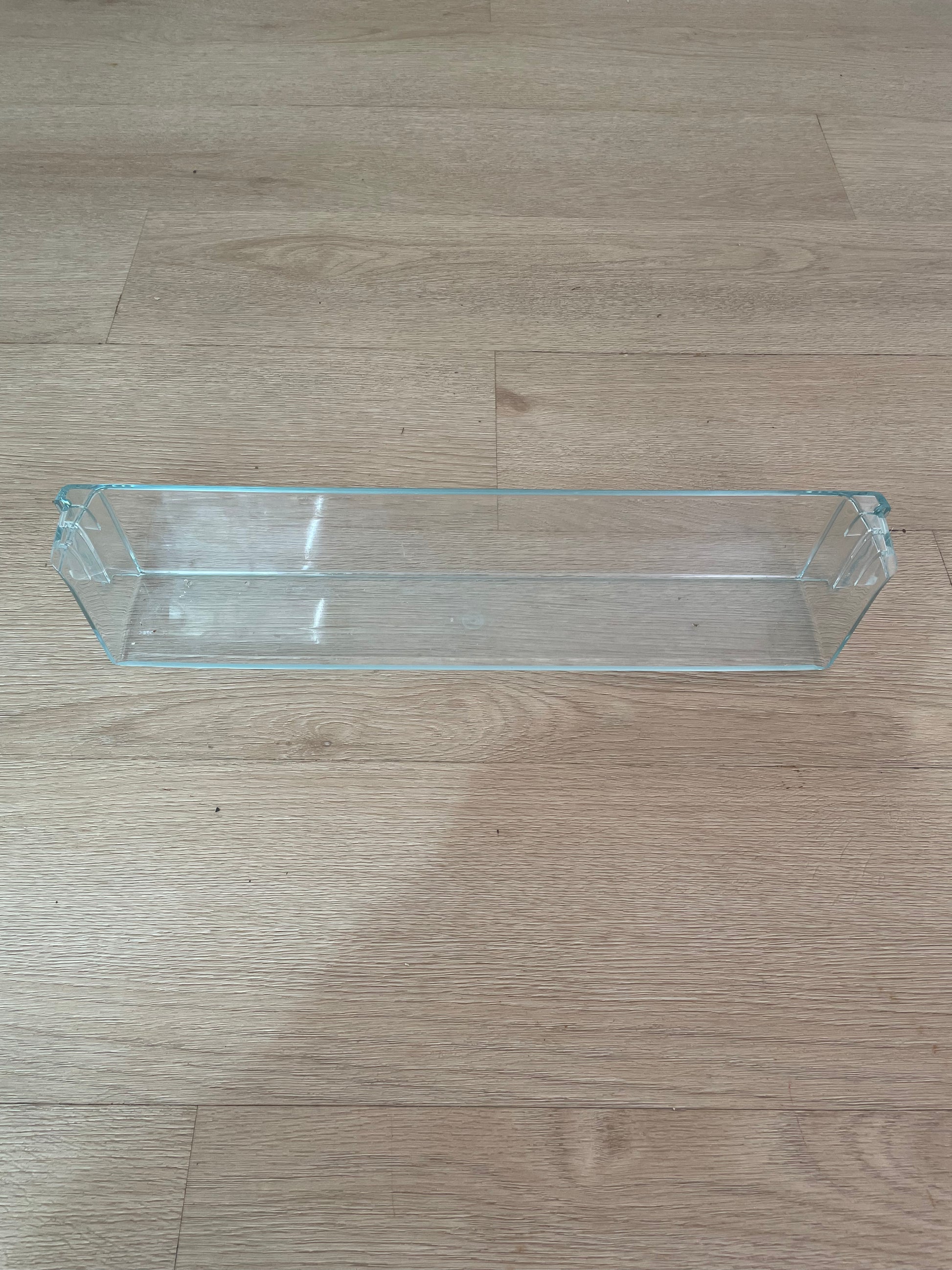 The full width clear plastic shelf that slots into the bottom of the fridge door!